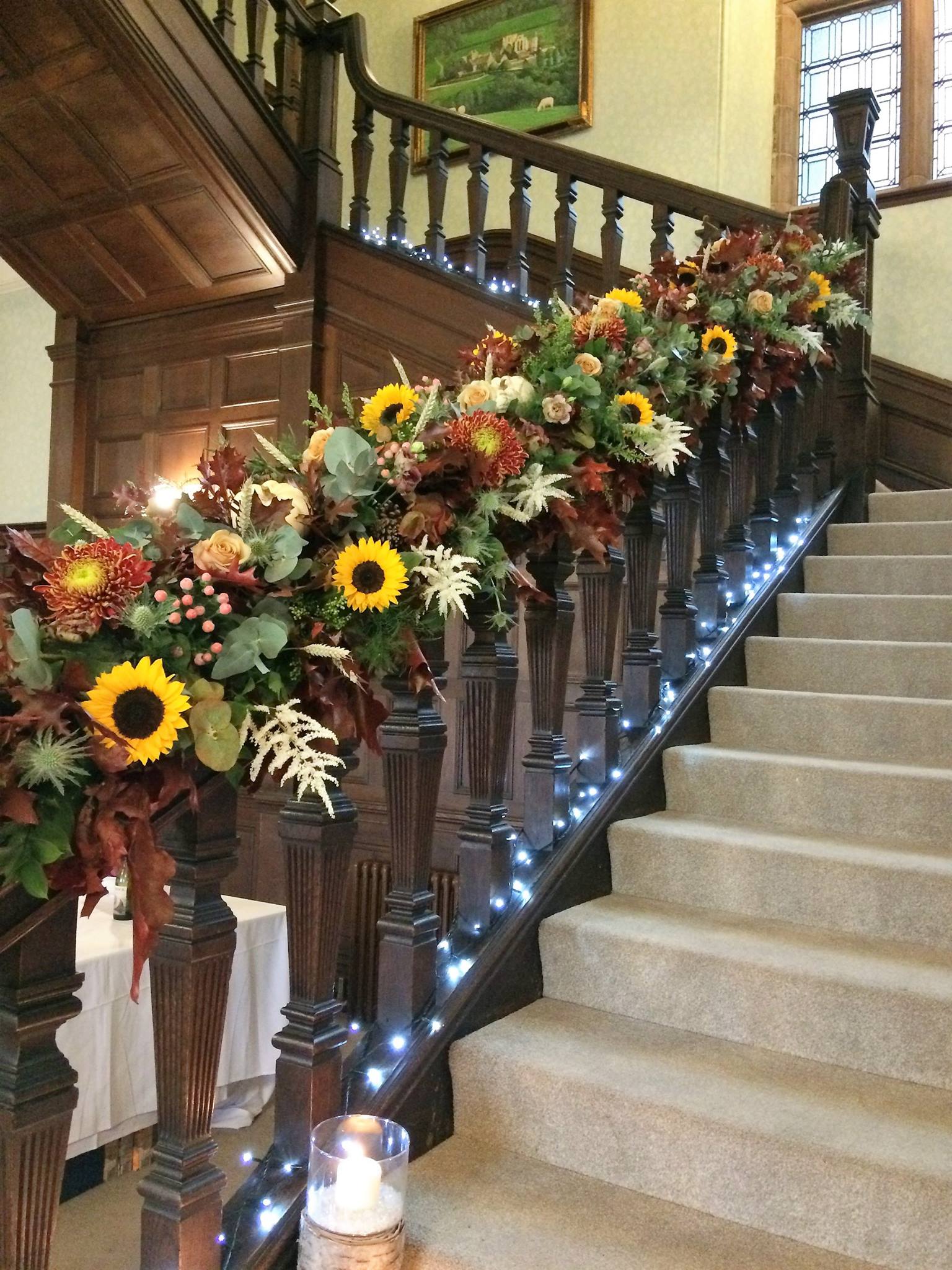 Specialist in floral installations for staircases, arches, and architectural spaces.